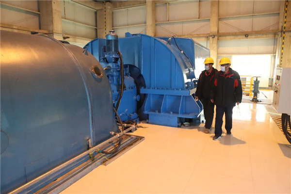 哈密利哈能源有限公司技术人员正在检查燃气压缩机尾气余热发电项目发电机组★。邢宝玉 摄